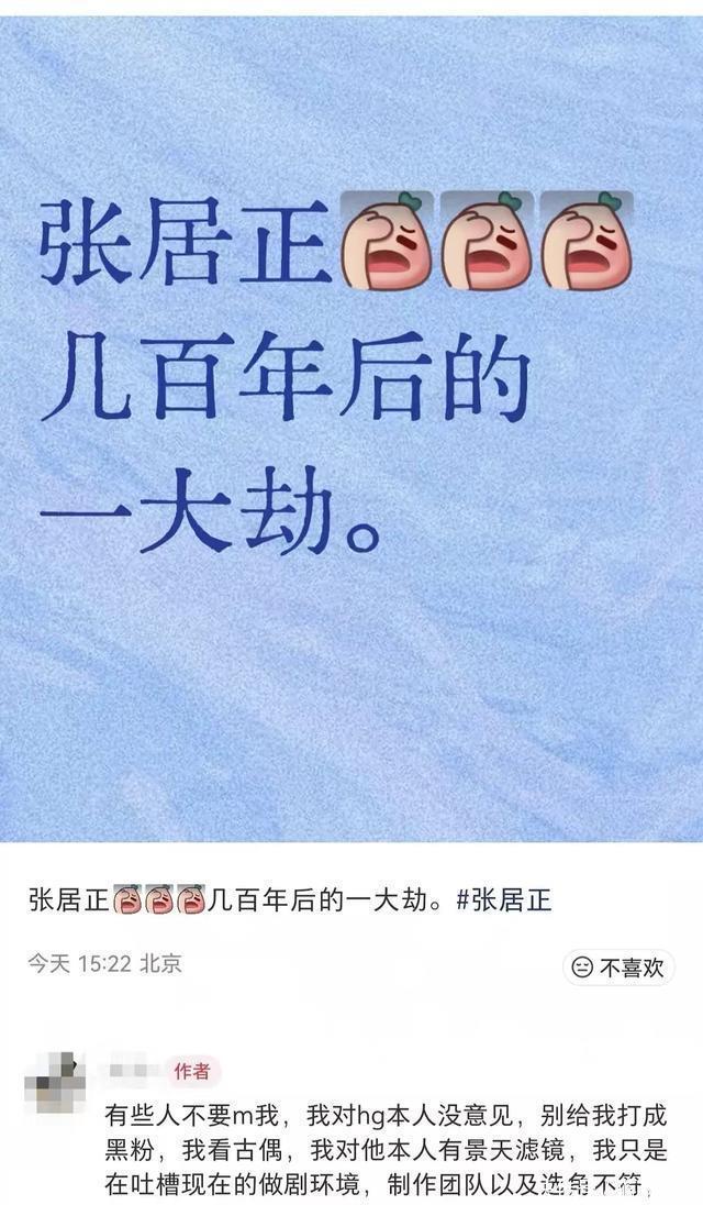 最为犀利的一个点评,网友说胡歌演张居正,那是张居正几百年后的一个大劫。 网友能说出这句话,自然不是为了批判而批判。